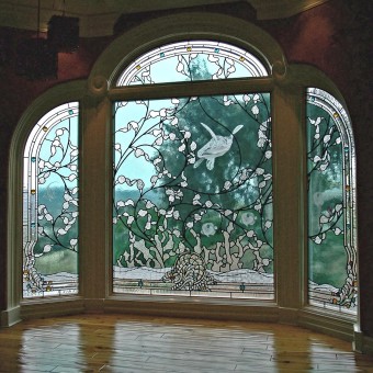 Most people identify stained glass with religious windows, in churches and synagogues. Stained glass has evolved into a form of painting on glass with finely ground colored glass particles called stain. This detail and design is then fired in a kiln at high temperature to fuse the stain to a piece of glass. These pieces are pre-cut from a pattern drawn by the artist/designer.